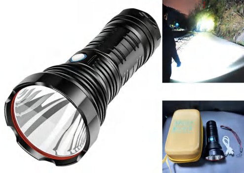 مزود بثلاث بطاريات 18650 وقابل للشحن عبر منفذ نوع C، خفيف الوزن (325 جم) ومتين، يوفر إضاءة قوية ومثالي للرحلات والتخييم والاستخدام في الأماكن المظلمة.