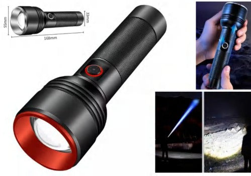 مزود ببطارية 26650 وقابل للشحن عبر منفذ نوع C، خفيف الوزن (285 جم) ومتين، يوفر إضاءة قوية ومثالي للرحلات والتخييم والاستخدام في الأماكن المظلمة.