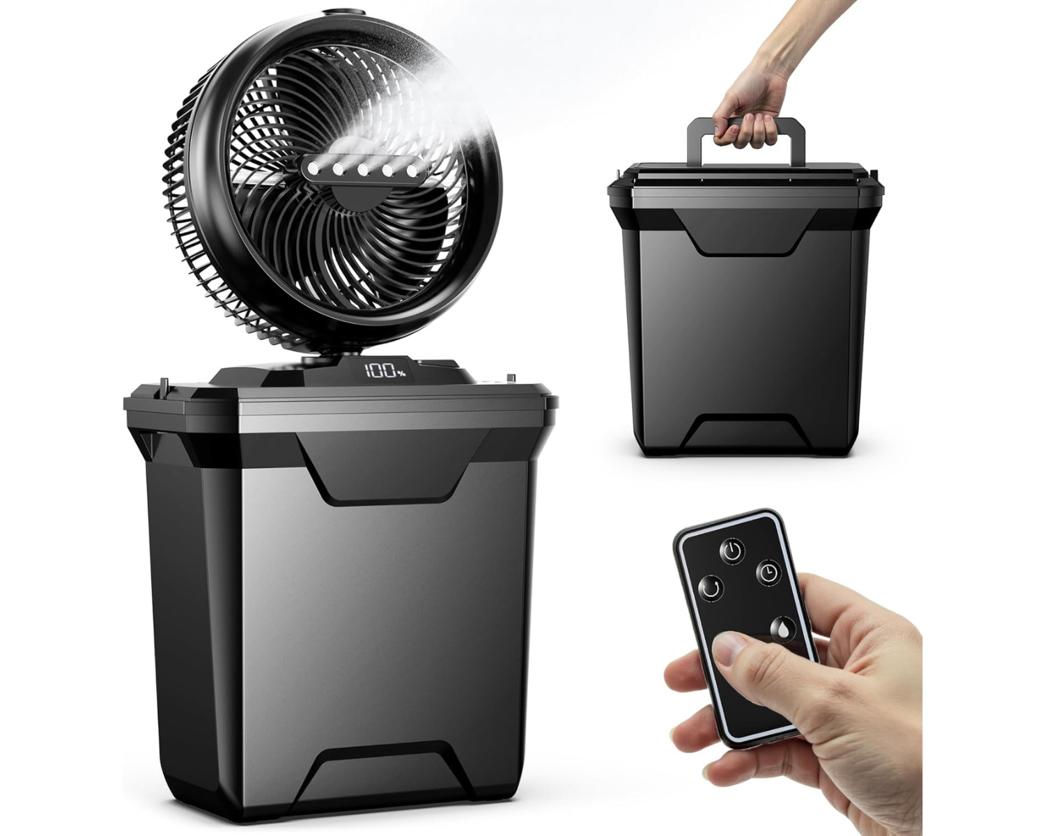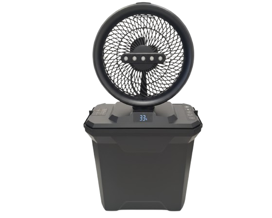 مزودة بخزان ماء صغير وبخاخ رذاذ ناعم يوزع الهواء البارد بشكل مثالي، لتبريد سريع ومريح حتى في الأماكن الضيقة.