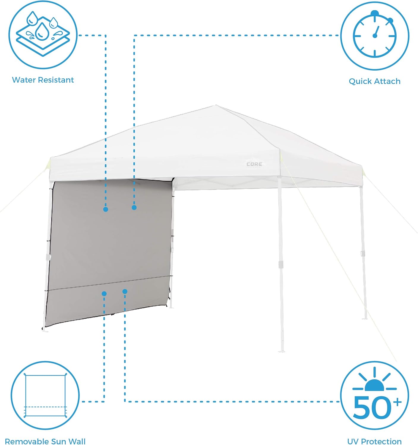 مصنوع من قماش بوليستر متين وقابل للتكيف مع معظم المظلات ذات الساق المستقيمة مقاس 10×10 قدم