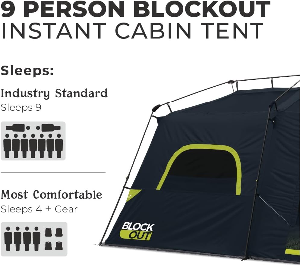 تتسع الخيمة لما يصل إلى 9 أشخاص بدون معدات أو لـ 4 أشخاص مع الأمتعة لراحة أكبر، مع إمكانية تقسيمها إلى غرفتين منفصلتين لخصوصية إضافية