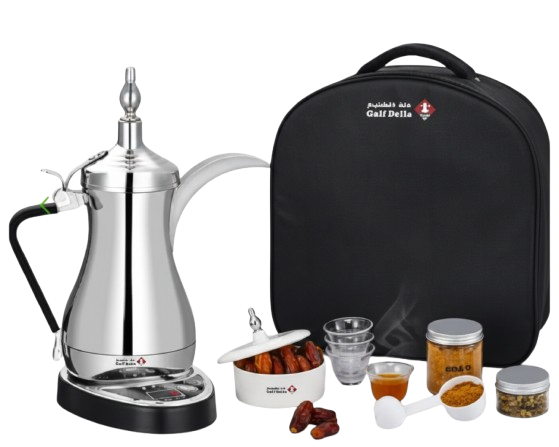 تحتوي على خاصية الإغلاق التلقائي بعد انتهاء التحضير لضمان الأمان، بالإضافة إلى ميزة الاحتفاظ بالحرارة لمدة تصل إلى ساعتين، للحفاظ على القهوة ساخنة لفترة أطول. تأتي دلة الخليج بتصميم تقليدي أنيق وعصري في الوقت ذاته، وتأتي مع حقيبة خاصة لتسهيل الحمل والنقل.