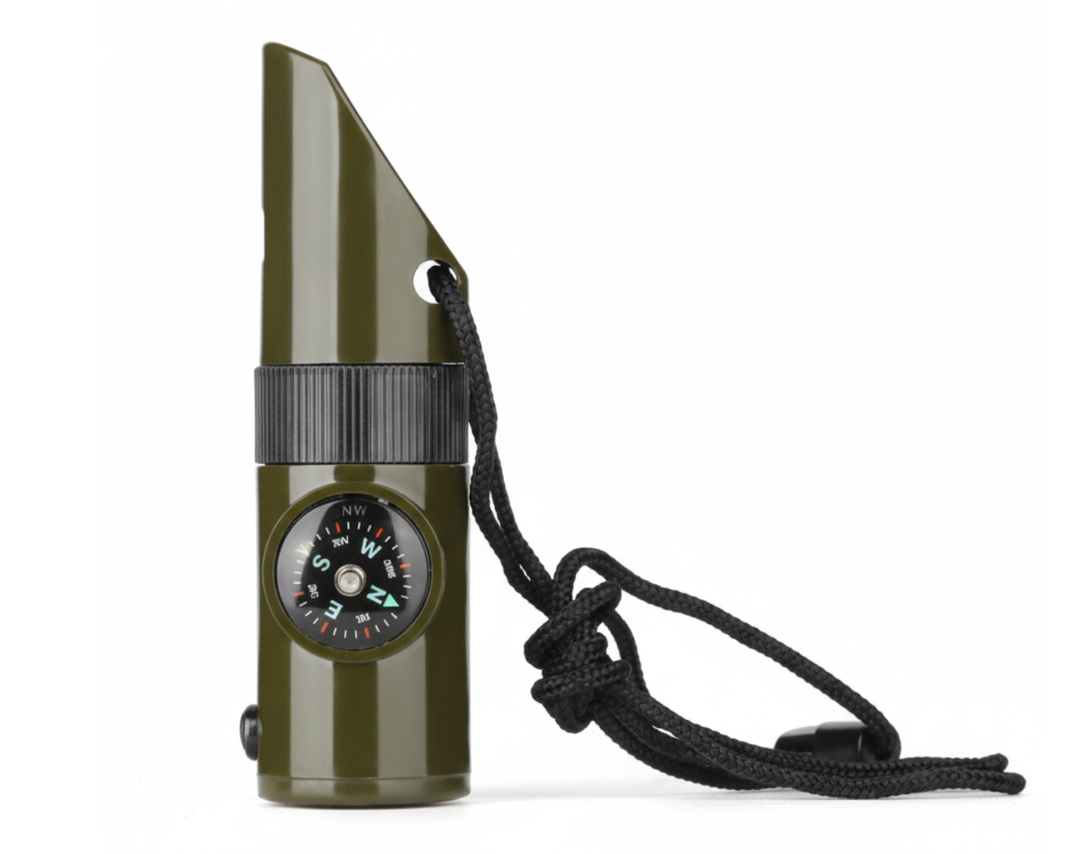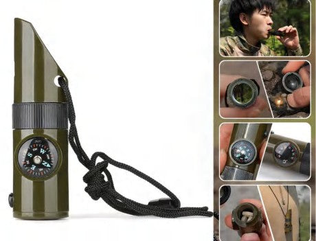أداة متعددة الاستخدامات 7 في 1 – صافرة إنذار عاكس ضوء مكبر زاوية تخزين بوصلة مصباح ميزان حرارة