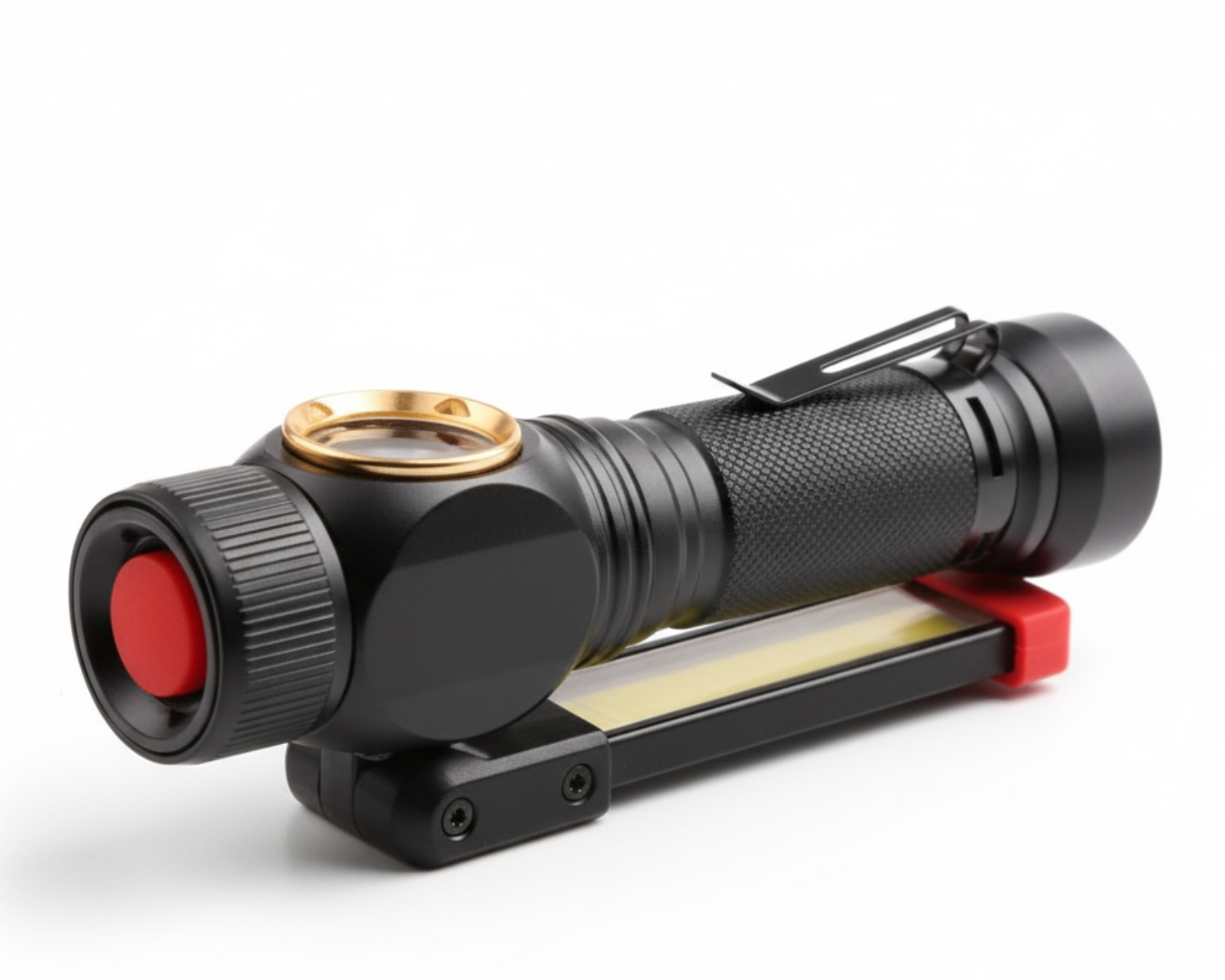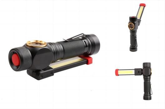 مزود ببطارية 18650 واحدة، ويجمع بين مصباح COB LED ومصباح جانبي مع إمكانية الالتصاق بالمغناطيس.