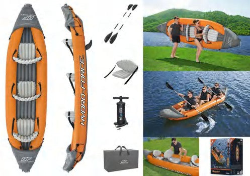 الوصف: قارب خفيف ومتين، مثالي للرحلات البحرية الصغيرة لثلاثة أشخاص، يوفر أمانًا واستقرارًا أثناء الإبحار مع سهولة النفخ والطَي والحمل.