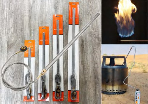 عصا إشعال عملية ومصممة لتشغيل المواقد، المشاعل، والشوايات بأمان وسهولة. طول العصا القصير يجعلها سهلة التحكم بينما يوفّر أنبوب التمديد بطول 100 سم مسافة أمان إضافية بين يد المستخدم ومصدر النار، ما يجعلها مناسبة للاستخدام في الرحلات، التخييم، والشواء الخارجي.