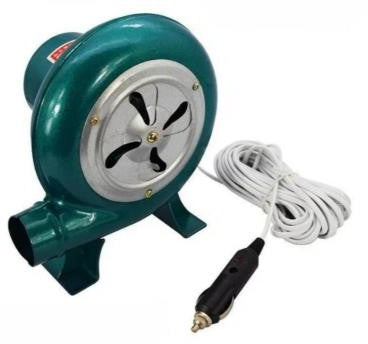 مروحة كهربائية عملية ومناسبة للشواء تعمل بجهد 12 فولت مزودة بكابل بطول 9 أمتار لتوفير مرونة وسهولة التحكم في تدفق الهواء وزيادة شدة الاحتراق أثناء الشواء