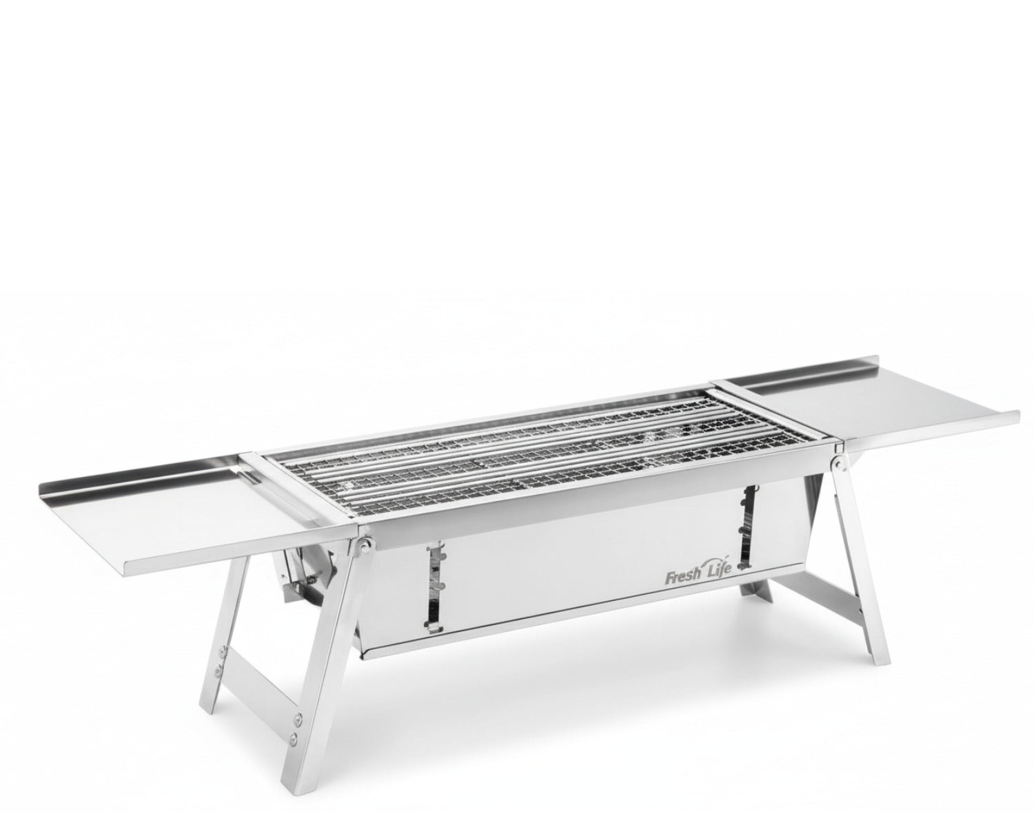 منقل فحم عملي ومتين مصنوع من الستانلس ستيل يوفر متانة وقوة عالية مناسب للشواء في الهواء الطلق الرحلات والتخييم