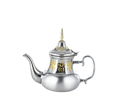 إبريق شاي ستانلس ستيل 0.8 لتر فضي وذهبي مزخرف