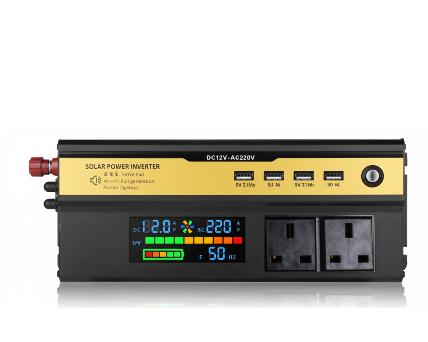 محول قوي لتحويل طاقة السيارة من 12 فولت إلى 220 فولت تيار متردد (50Hz ±3Hz)، مع مخرج USB لشحن الأجهزة الإلكترونية. مثالي لتشغيل الأجهزة الكهربائية الصغيرة أثناء السفر أو التخييم.