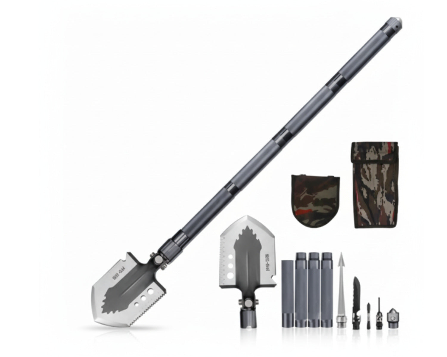 الخامة: فولاذ + ألومنيومالمقاس: 93.5×12.5 ممالوزن: 1200 غالوظيفة: مجرفة قوية وكبيرة الحجم، مثالية للرحلات والتخييم، تساعد في حفر الأرض ونقل التربة أو الرمل بسهولة وكفاءة