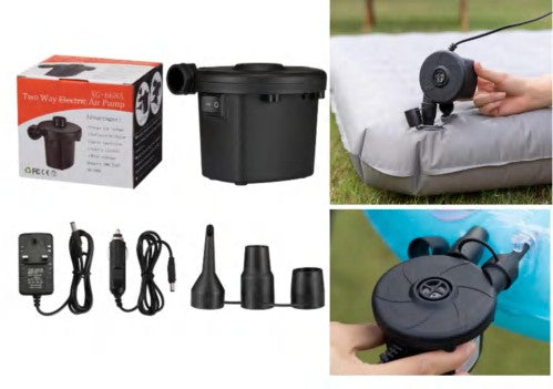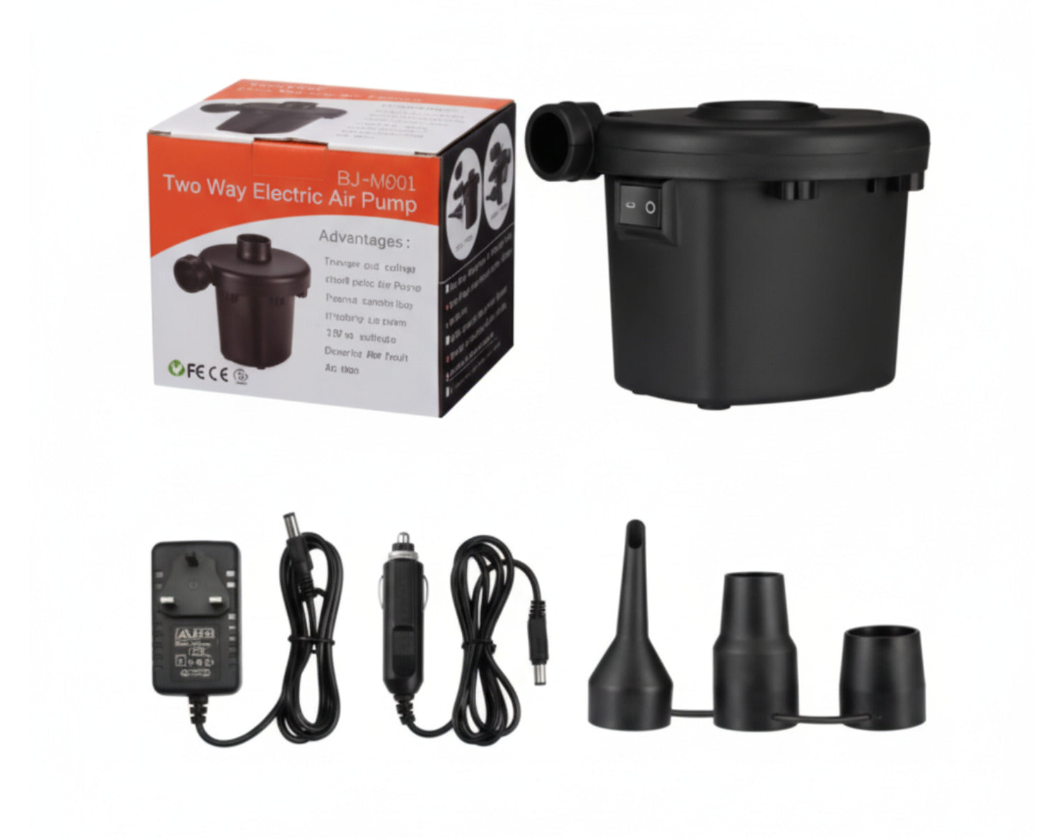 الوظيفة: تضخ أو تفرغ الهواء بسهولة، مثالية للمراتب الهوائية، القوارب، والأغراض المحمولة الأخرى.
