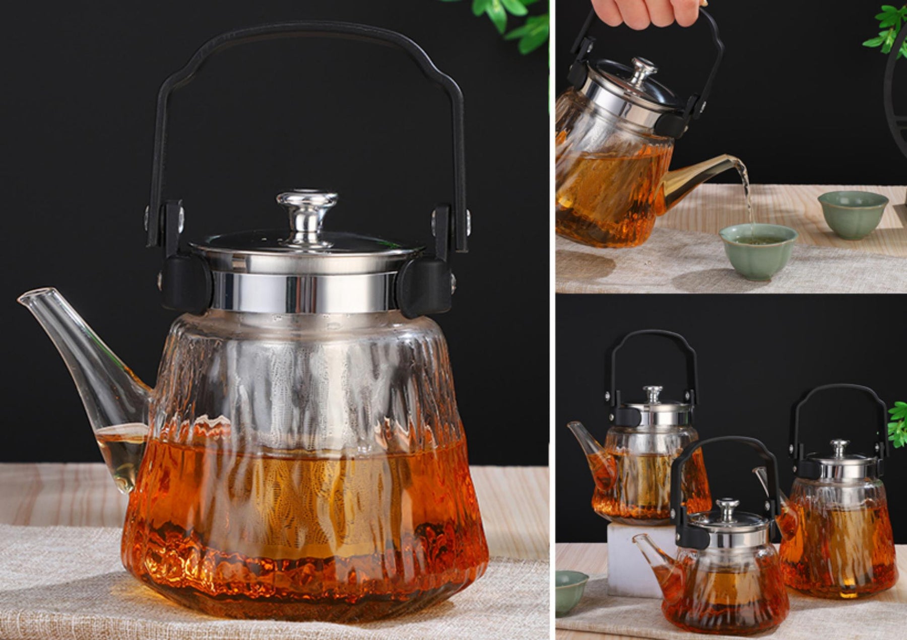 إبريق أنيق مصنوع من زجاج البوروسيليكات العالي الجودة مع قاعدة من الستانلس ستيل 304 يتميز بمقاومته العالية للحرارة والتآكل تصميمه العصري يجمع بين الجمال والمتانة مثالي لتقديم المشروبات الساخنة أو الباردة في المنزل أو المكتب