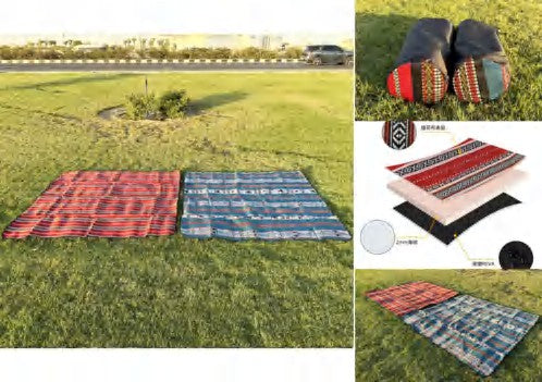 الخامة: قماش جاكار + إسفنج + PEVA (مقاوم للماء)الوصف: بساط واسع ومقاوم للماء، مثالي للنزهات والتخييم والرحلات الخارجية، يوفر سطح مريح للجلوس أو الاسترخاء، سهل الطي والحمل وخفيف الوزن.