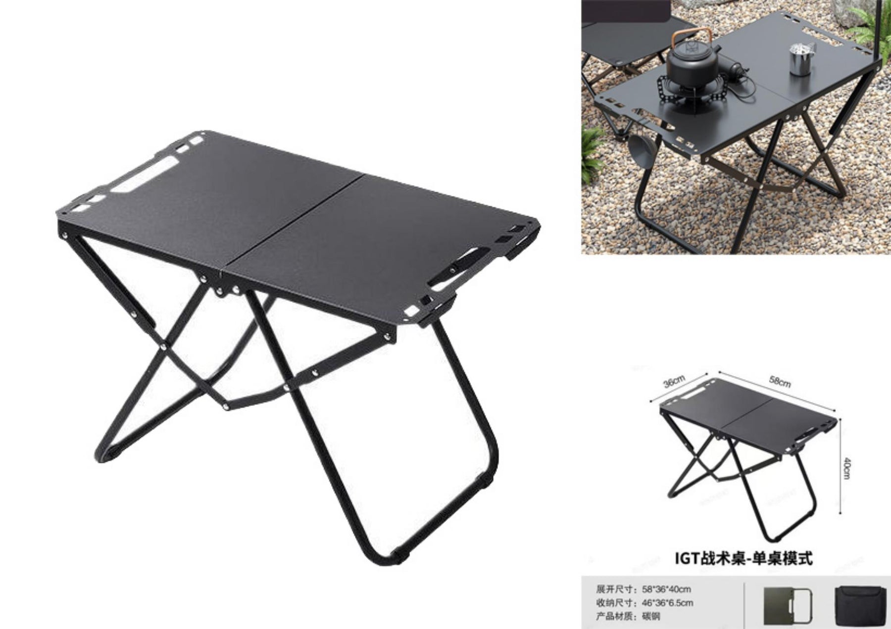 طاولة قابلة للطي من الفولاذ التيتانيومي 58×36×40 سم