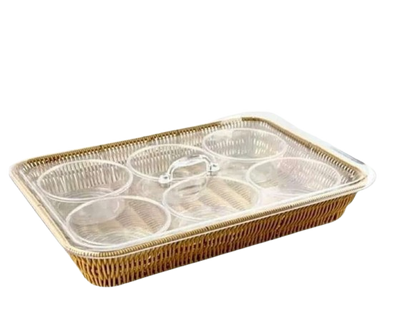 صينية قطور مستطيلة مصنوعة من القش الطبيعي
