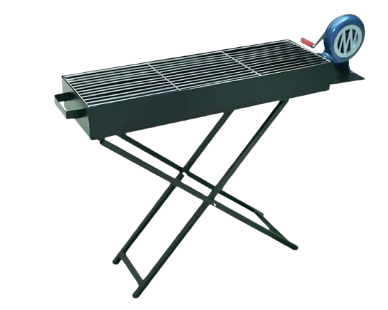 منقل شواء عملي ومتين مزود بمروحة مناسبة للشواء في الهواء الطلق الرحلات والتخييم يوفر مساحة مناسبة للطهي مع تصميم يسهل التحكم في الحرارة وتوزيع النار بشكل متساوي ويساعد المروحة على زيادة تدفق الهواء لتعزيز الاحتراق