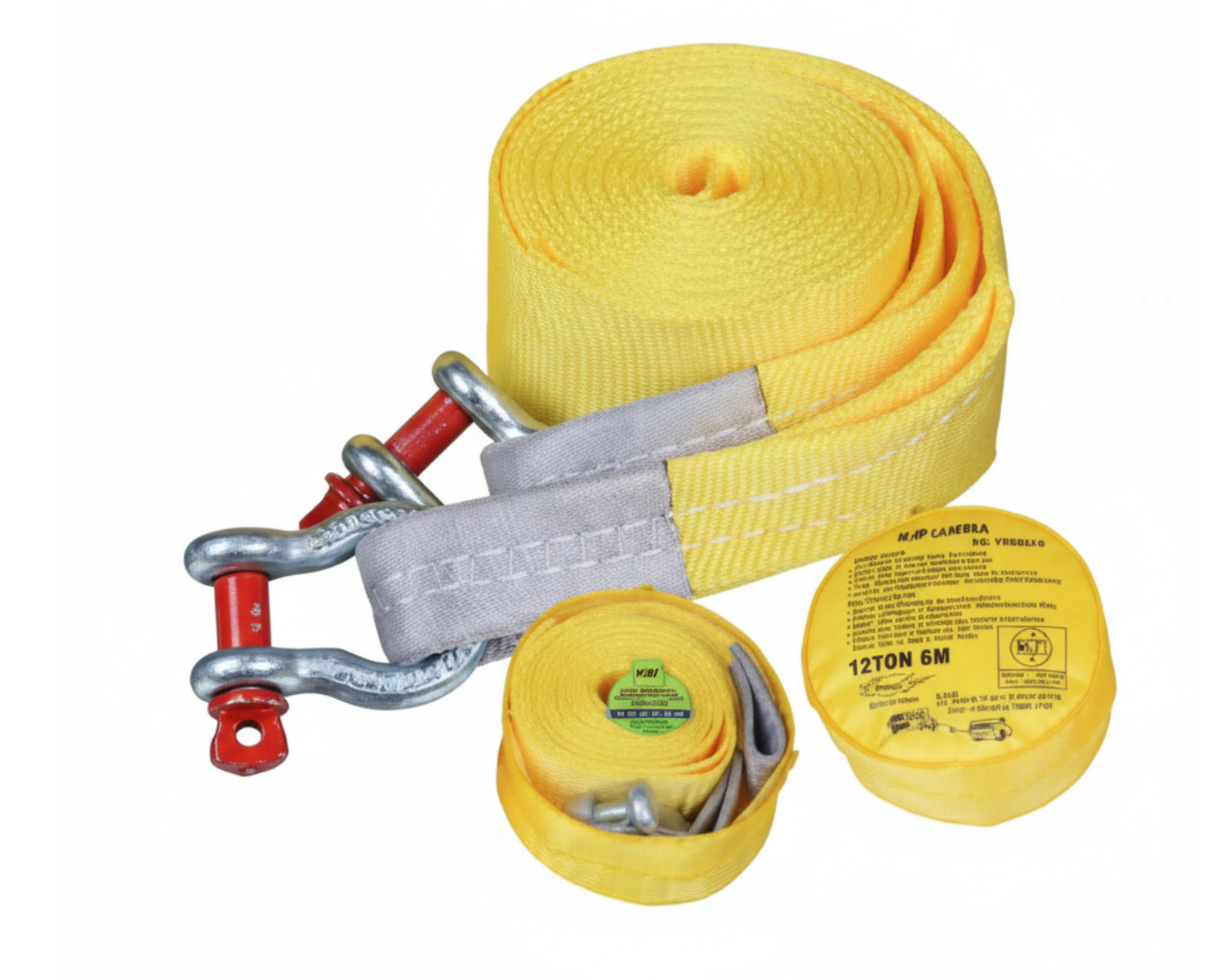حزام عالي المتانة مصمم لسحب المركبات الثقيلة والسيارات الكبيرة، يتميز بسماكة إضافية وعرض واسع يمنح قوة وأمان أكبر أثناء الاستخدام، مع طبقة PVC داعمة لزيادة المتانة.