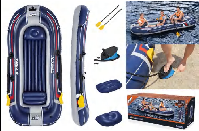 الوصف: قارب قابل للنفخ خفيف ومتين، مناسب للرحلات البحرية والنزهات على الماء، يوفر استقرارًا وأمانًا مع سهولة الطي والحمل.