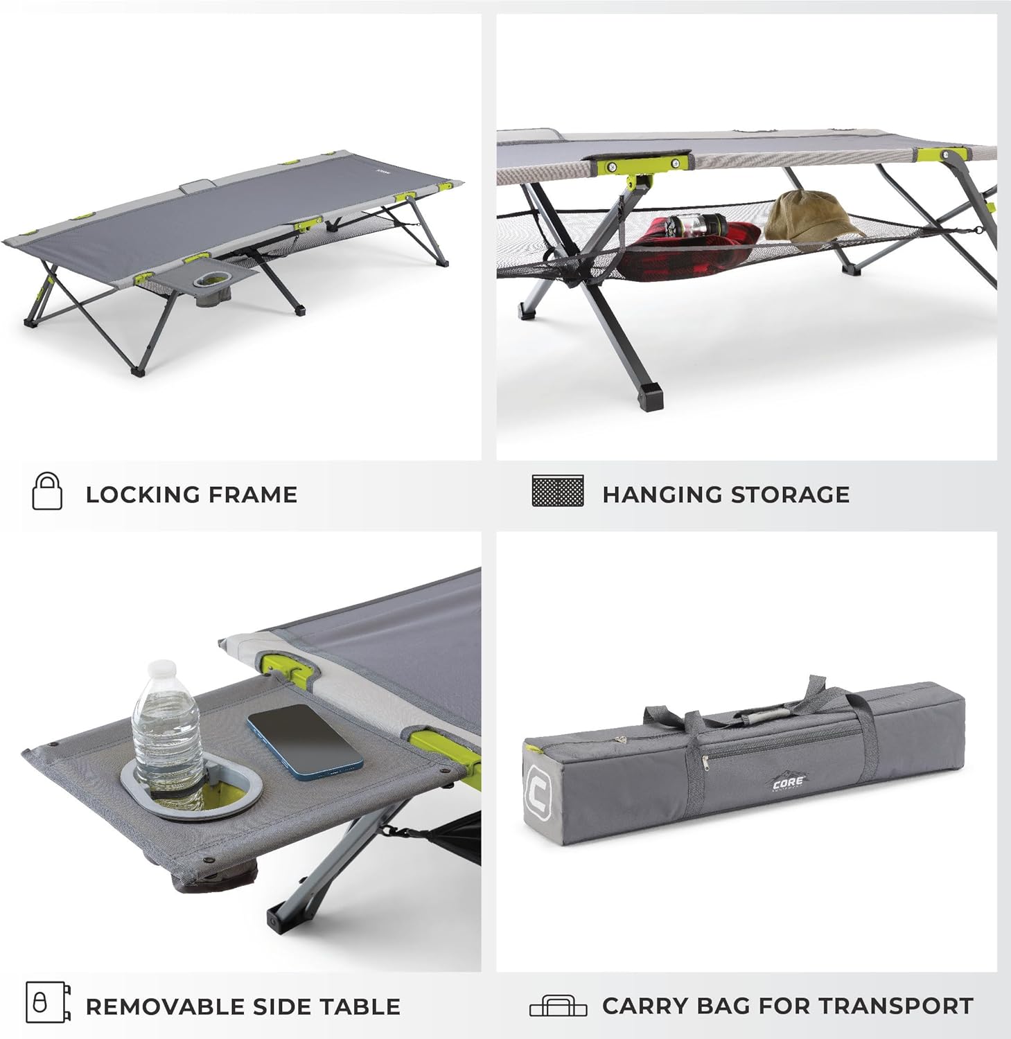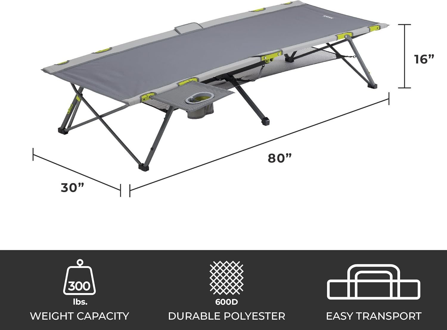 متين: مصنوع من إطار فولاذي مطلي بالمسحوق، مع سعة وزن قصوى تصل إلى 300 باوند (~136 كغ)، مما يضمن دعمًا وراحة عالية في مغامراتك الخارجية