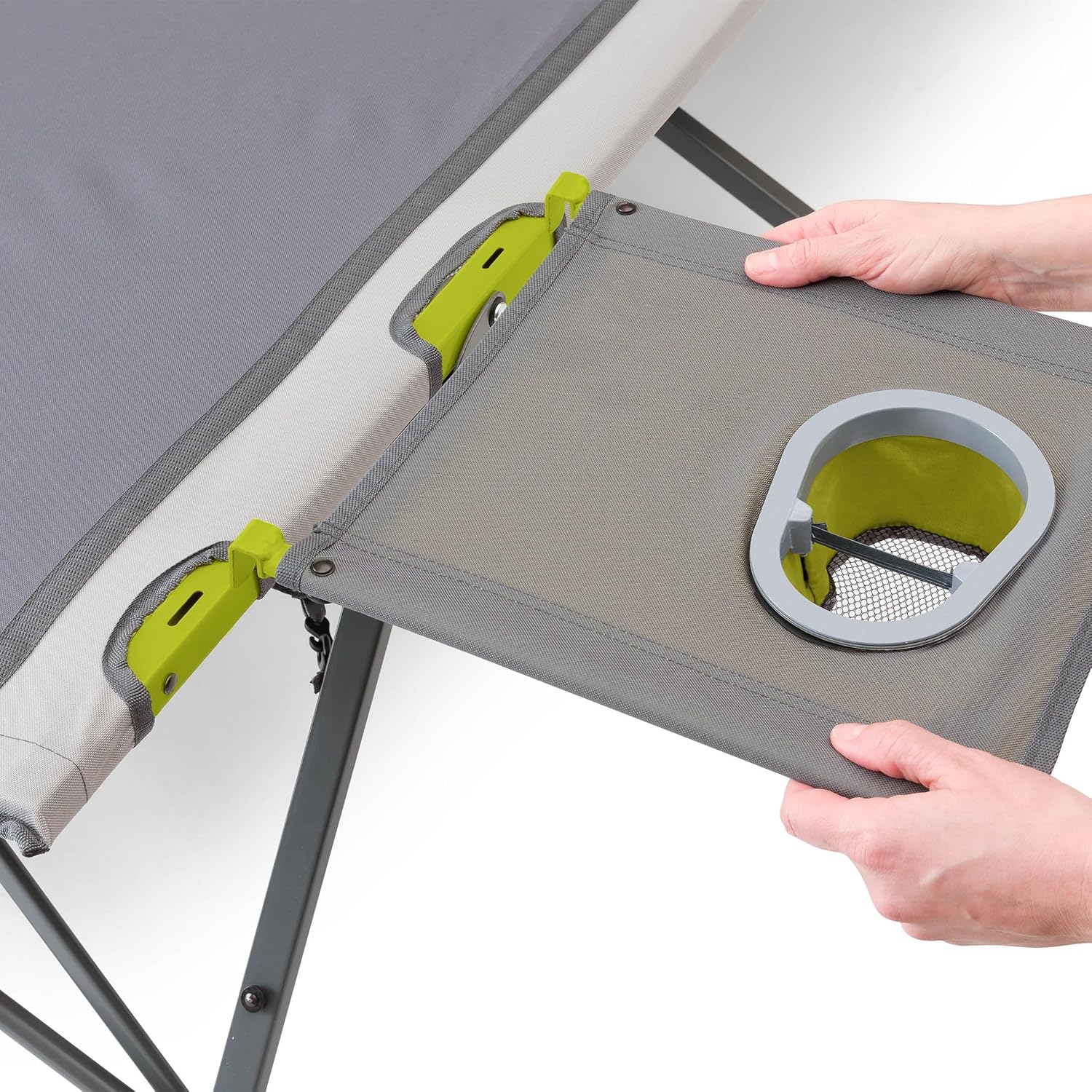 الراحة: مزود بحامل أكواب وطاولة جانبية قابلة للفصل على كلا الجانبين لتبقي مشروباتك ووجباتك الخفيفة بالقرب منك