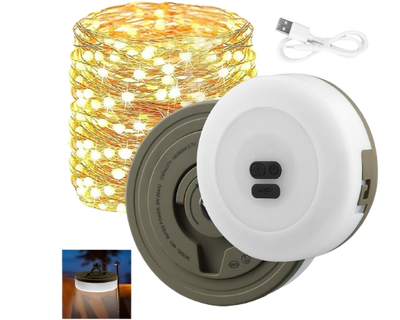 سلسلة أضواء LED متعددة الاستخدامات مع مصباح تخييم – قابلة للشحن